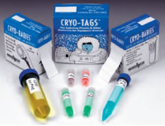 提供Diversified Biotech公司生產(chǎn)的大小不同,顏色各異的低溫標簽。Cryo-Babies®系列標簽是小標簽,對應(yīng)的Cryo-Tags®是大標簽。標簽均由塑料聚烯烴制造,可以耐受常溫和低溫的貯存環(huán)境(液氮的-196°C也沒問題)。該系列標簽可以粘貼于塑料、玻璃、金屬等物體表面,沸水浴100°C中以及干熱溫度達150°C時均不干裂、剝落和降解。此外,標簽抗多種試劑、油、有機試劑、腐蝕性試劑以及其它可以導致剝落的潛在物。室溫下水中浸泡24小時以及100%濕度35°C環(huán)境下24小時均沒有問題。