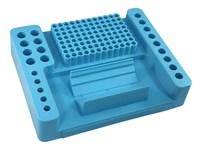 PCR實驗時不需要碎冰,直接用預(yù)先過夜冷凍的金屬臺子,可以對PCR實驗的試劑、樣品低溫保護(hù),一般2-4°C可以保溫5個小時??梢苑胖?/span>9個1.5ml管、8個2ml管、5個0.5ml 管、一個96孔PCR板、一個50ml試劑槽。