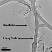 石墨烯,一種只有一個原子厚的二維碳膜,這種新型材料化學性能穩(wěn)定,很難與其他物質(zhì)結(jié)合,石墨烯是目前發(fā)現(xiàn)的硬度最大的物質(zhì),有極好的導電和導熱性能,這些性能使得石墨烯極適于制作電鏡載網(wǎng)支持膜,為TEM觀測納米粒子提供了極大的方便,對進行納米粒子界面研究者非常有幫助,尤其是納米顆粒較小且附著力較差時可以使用這種特制的電鏡載網(wǎng)。