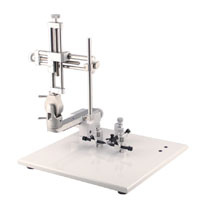 Stoelting創(chuàng)造性在的一個(gè)基座上放置兩個(gè)定位單元,每個(gè)單元都帶有獨(dú)立的耳棒。通過(guò)引導(dǎo)螺紋,操作臂可以控制左右和上下方向的移動(dòng);前后控制通過(guò)楔形榫頭來(lái)進(jìn)行,在每個(gè)方向上都可以移動(dòng)80mm 。耳棒的高度可以獨(dú)立調(diào)節(jié),垂直方向的刻度采用了激光雕刻技術(shù),能夠非常新晰的讀出耳棒的高度。輕質(zhì)的聚甲醛樹(shù)脂耳棒,前端逐漸變細(xì);特殊設(shè)計(jì)的下頜夾持器;非植入性橡膠頭。