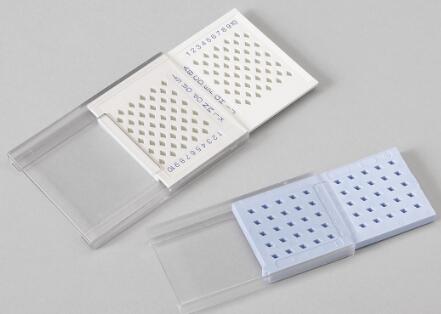 提供50孔和100孔兩種規(guī)格的樣本盒,用來(lái)存放3.05mm的TEM載網(wǎng)。每個(gè)儲(chǔ)格間進(jìn)行數(shù)字/字母組合編碼,便于精確定位檢索樣本。每個(gè)儲(chǔ)格設(shè)計(jì)為菱形,可以很好的防止拿取時(shí)手的抖動(dòng)對(duì)樣品造成損害,孔深可以很好的固定以防運(yùn)輸或者顛倒時(shí)載網(wǎng)滑落。