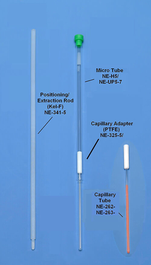 核磁管/毛細(xì)管套裝,包含一個(gè)核磁管(Micro NMR Sample Tube)、一個(gè)適配蓋子(one adapter)、一個(gè)拉取桿(one extraction rod)、5根毛細(xì)管capillaries。適于微量樣品15-115µl的測(cè)量。請(qǐng)參閱下表信息選擇最適合樣品體積和探針的核磁管和毛細(xì)管大小。樣品被放置在一次性毛細(xì)管中,對(duì)較小直徑樣品有著更好的分辨率。毛細(xì)管和管之間的殘余(環(huán)形)空間可以用其它材料填充,而不是直接將這些材料添加到樣品中。 這不僅使您的樣本盡可能集中,而且可用來(lái)1H,19F,2H測(cè)量。