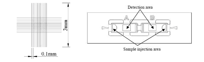 計(jì)數(shù)板的外觀尺寸:25*75*1.6mm,計(jì)數(shù)池深度0.02mm,每池的加樣體積數(shù)3µl?。