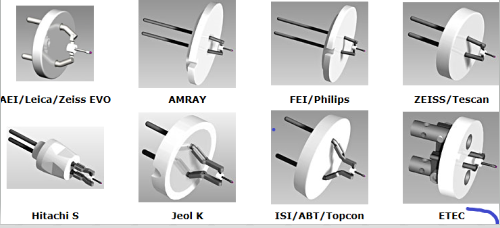 常見不同品牌的電鏡的燈絲基座尺寸Dimensions for EM Filament Bases: