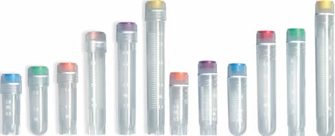 又稱為凍存管,由聚丙烯制造,檢測(cè)認(rèn)定為Rnase-free,Dnase-free,Pyrogen-free,DNA-free。可以用來裝盛生物學(xué)樣品、人或動(dòng)物的細(xì)胞等,溫度耐受至-196℃。有白色可書寫區(qū),有配套的有顏色管蓋來區(qū)別不同的樣品。管蓋與管子材質(zhì)相同,具有相同的膨脹系數(shù),冷凍管子均經(jīng)過伽馬射線消毒。