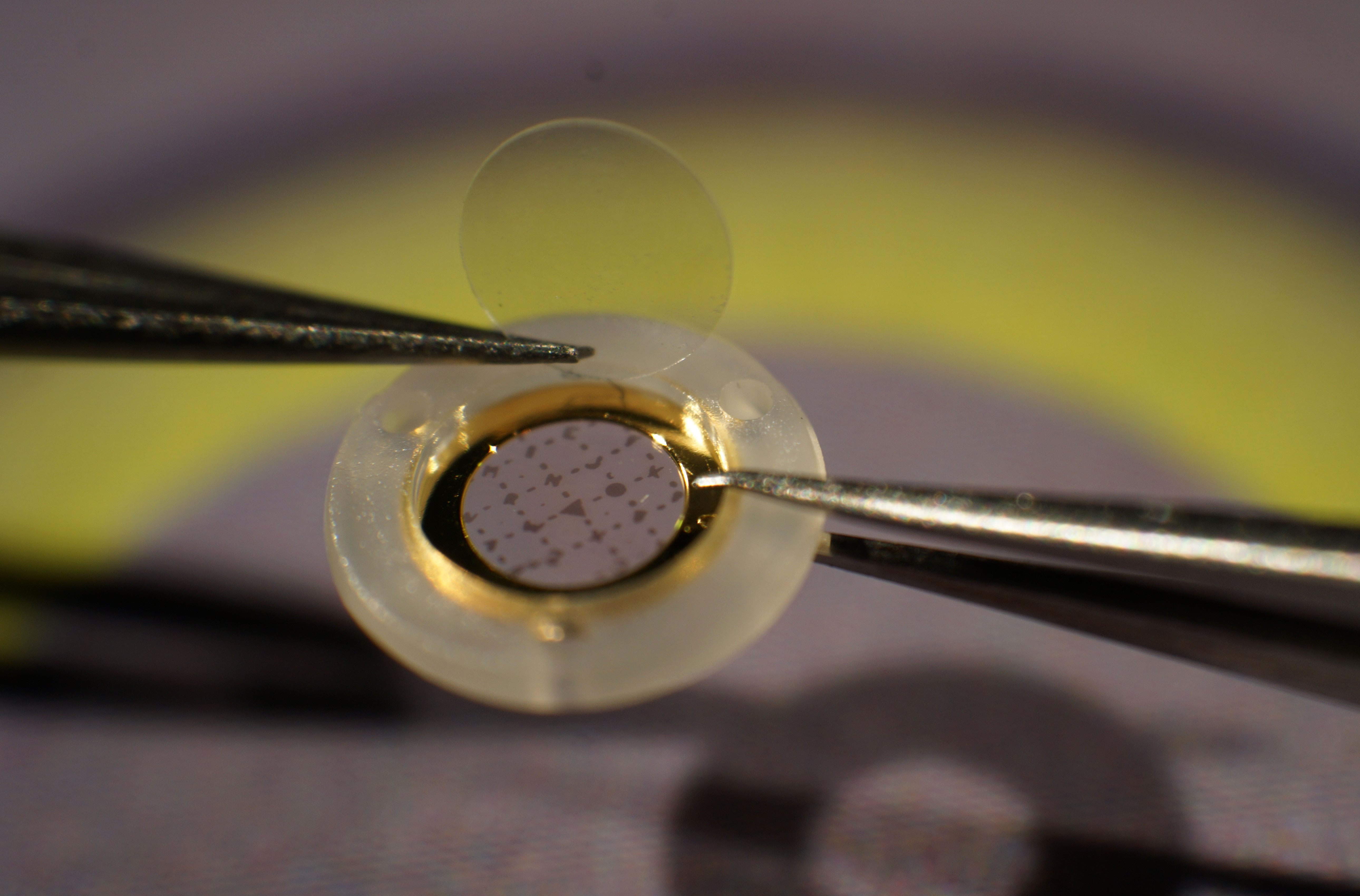 這是專門為萊卡高壓冷凍儀HPM100設(shè)計(jì)的一款樣本準(zhǔn)備工具,整體類似一個(gè)小型培養(yǎng)皿。首先在藍(lán)寶石圓片(載物作用)上置一個(gè)50微米厚度的黃金圓環(huán),外夾環(huán)形塑料片,具體的樣子見(jiàn)下圖。樣本置于載物作用的藍(lán)寶石圓片上,再覆一個(gè)蓋片,蓋片也是藍(lán)寶石圓片,可以簡(jiǎn)單地把樣本封在兩個(gè)藍(lán)寶石圓片之間,樣本艙置于一個(gè)特殊的特殊的適配器內(nèi)(HPM100,HPM010,HPF COMPACT O2儀器均有這樣的適配器)?;罴?xì)胞之類的樣本在進(jìn)入高壓冷凍儀之前在這個(gè)樣本艙內(nèi)可以直接在光鏡下觀察呈像。從高壓冷凍儀內(nèi)出來(lái),進(jìn)一步進(jìn)行冷凍替代和常溫切片。