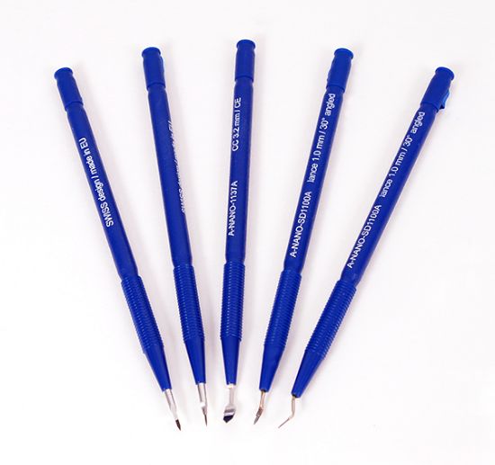 這種納米鉆石刀目前是最鋒利的,滿足你的所有的顯微解剖操作。提供兩種材質(zhì)的刀柄供選擇:鋁制(72005系列)和塑料柄(72006系列)。刀片采用多晶CVD工藝制作,等離子磨削,保證了刀刃的精度和鋒利。